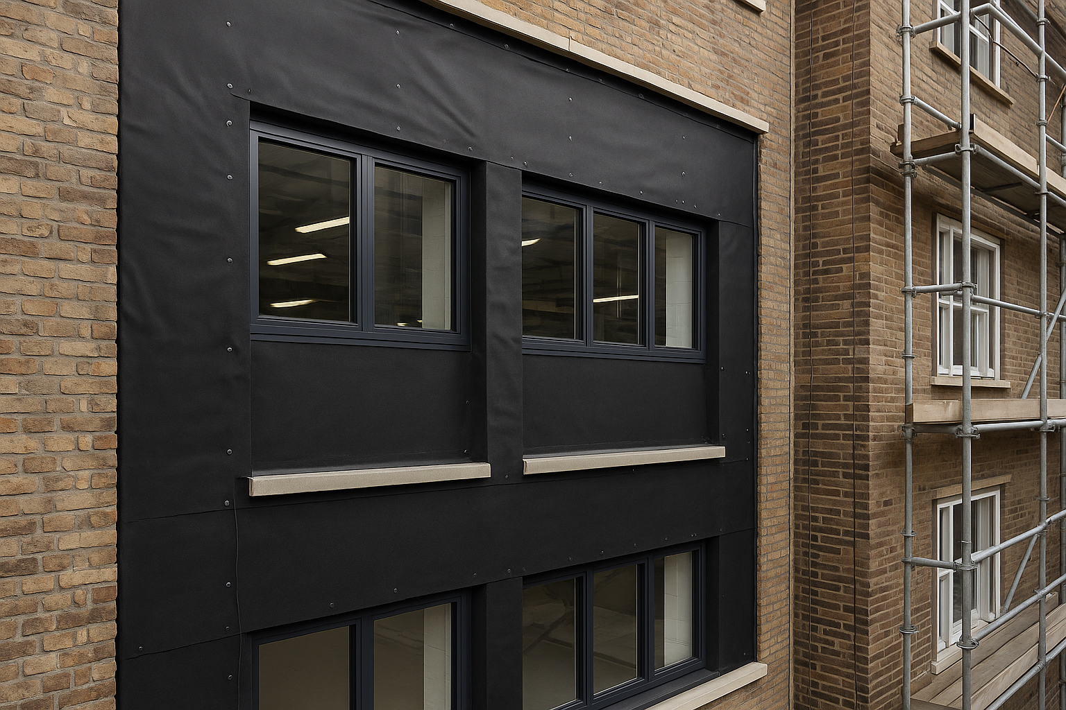 Facade interfaces between construction elements, such as around windows and doors, are hotspots for water and air leakages. Effisus ConnectedSeal is a streamlined EPDM membrane with great elongation capacity and UV resistance
